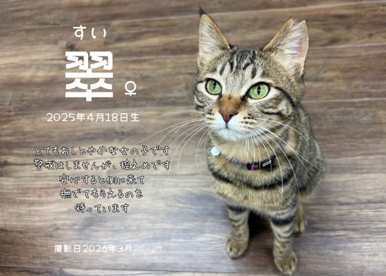 警戒心は少しありますが、穏やかな子。好奇心旺盛でおもちゃも大好き!人慣れは充分しています♪